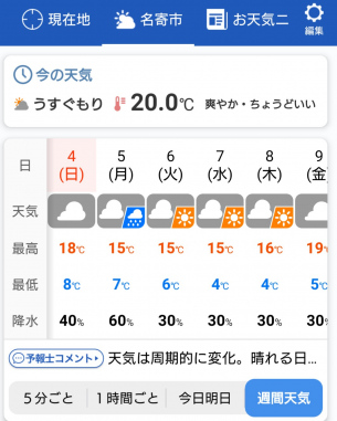 さて、来週の天気予報を見てみると・・・