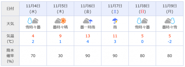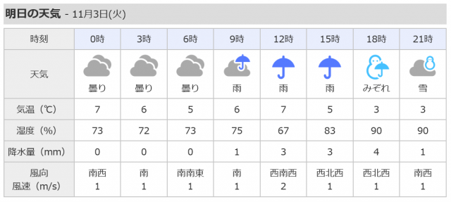 明日3日の夜から4日にかけて ” 雪の予報です ”
