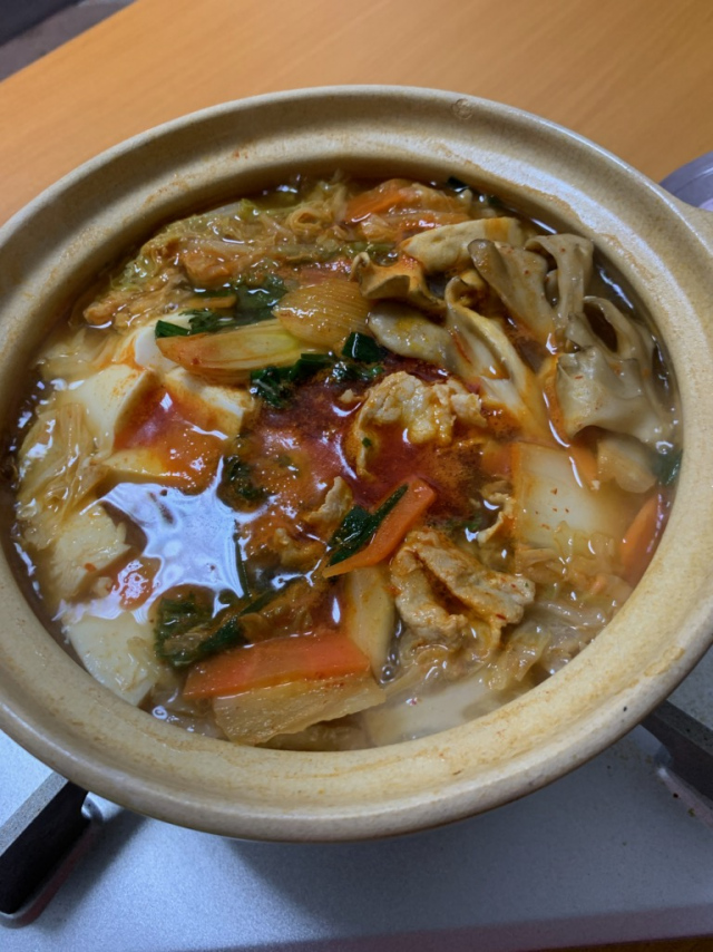 写真は具材を入れて火にかけた状態、味付けはまだ。