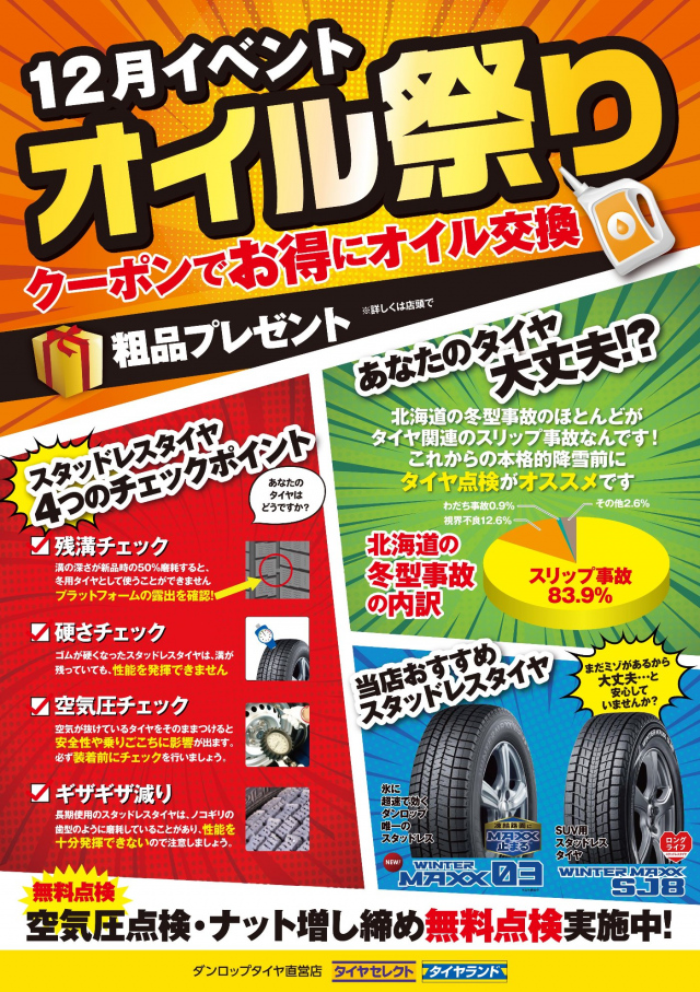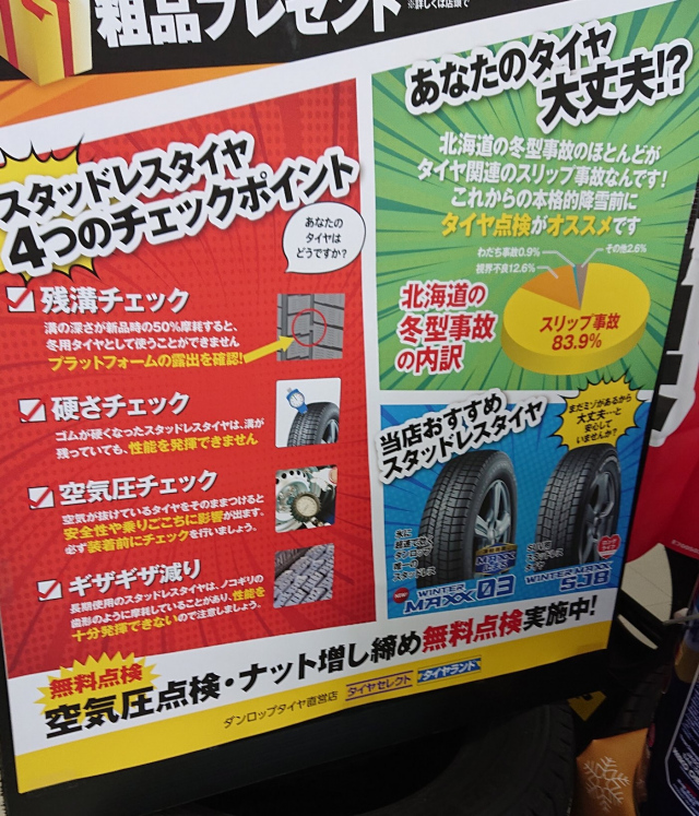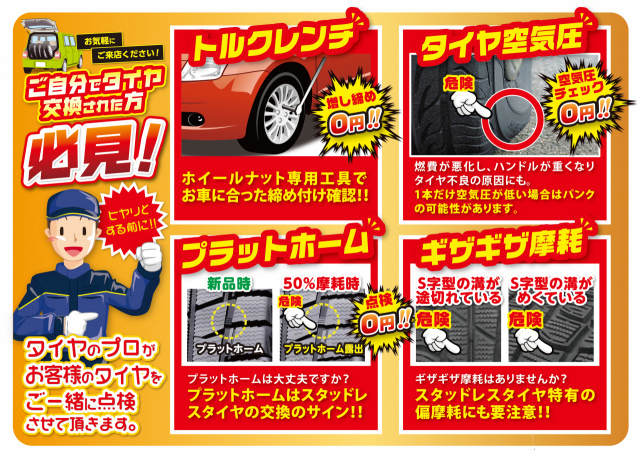 ↑ タイヤの無料点検も実施中です!