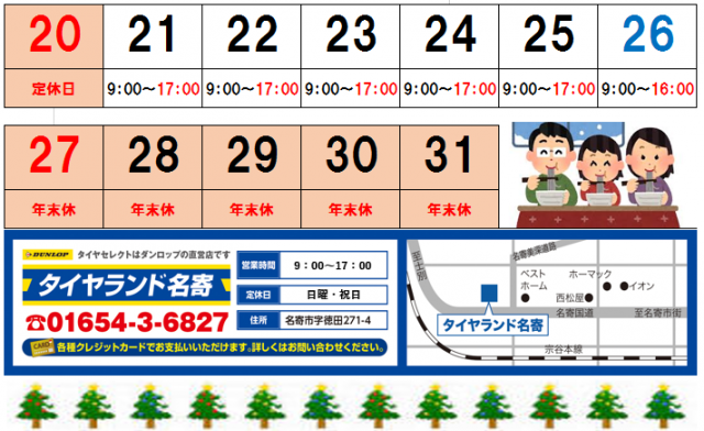 タイヤ交換・オイル交換・各種点検をご予定の方は