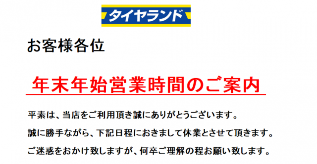 年末年始・営業時間のご案内です。
