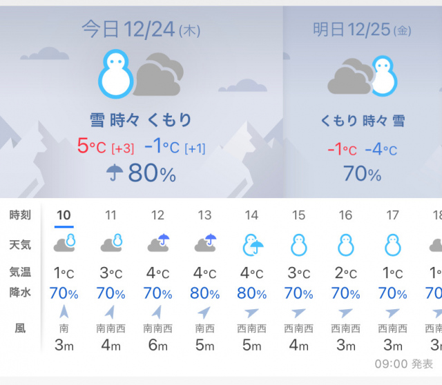 今日・明日、それ以降・・・しばらく雪の予報。