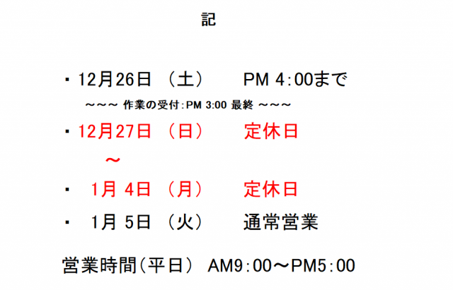 1月5日より ” 通常営業 ” と、させて頂きます。