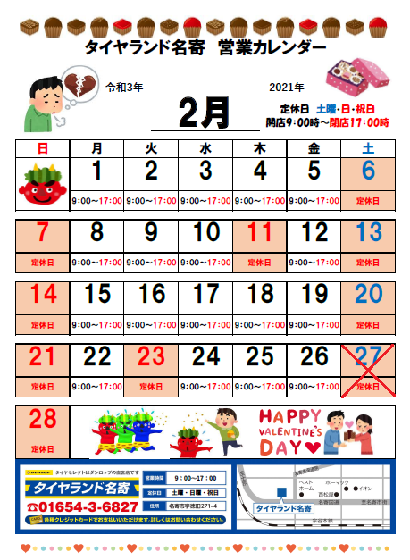 2月1日のショップ日記での「営業日のご案内」ですが・・・