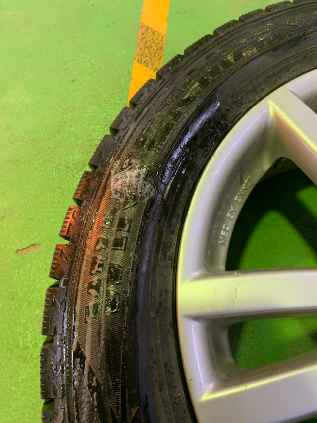 タイヤサイド部に穴が!何かにぶつかってしまった?