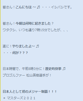 イシバシさんのショップ日記を楽しみにされていた皆様、
