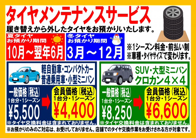 冬タイヤも! 夏タイヤも!ご加入できます♪