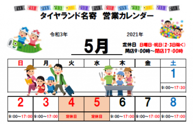 明日3日は「 憲法記念日 」4日は「 みどりの日 」