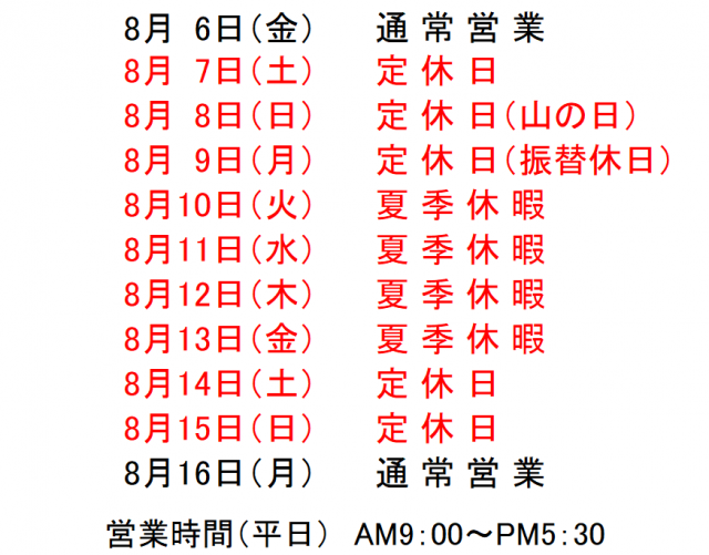 ↑ タイヤランド名寄 ” 夏季休暇 ” のお知らせです。