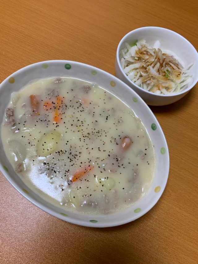 ” シチューと小さいサラダ ” 寒い日の定番 ♬