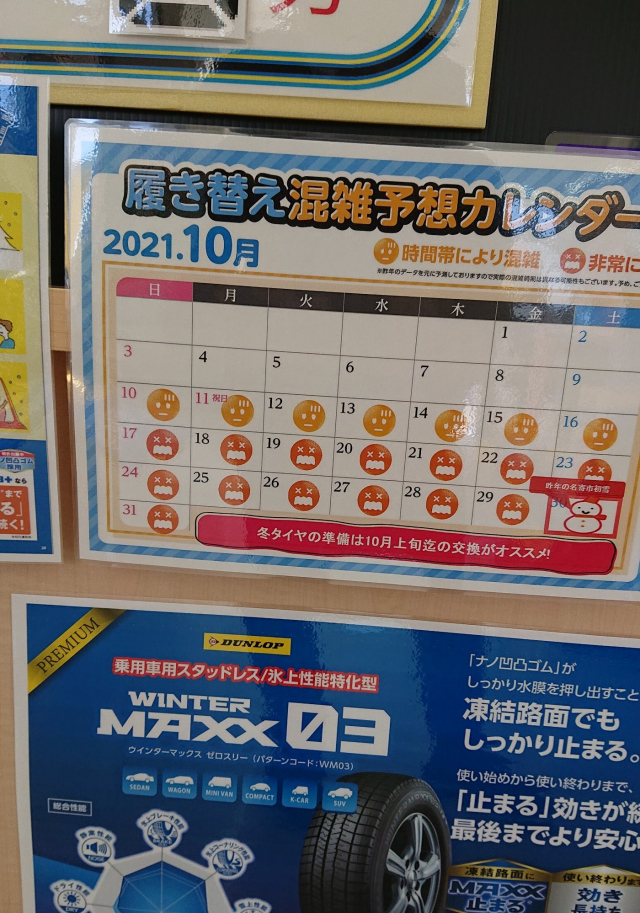 例年、10月の中旬あたりからタイヤ交換で混雑し始めます。