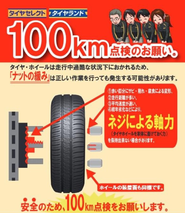 ↓ タイヤ交換後、100キロ走行されたら!