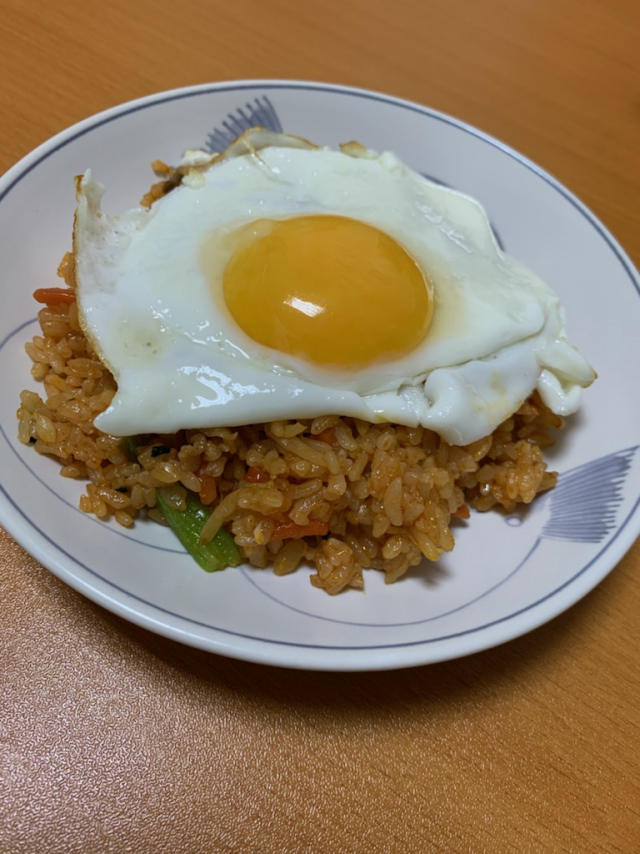 昨日の夜は!ビビンバ風チャーハンをチン ♬