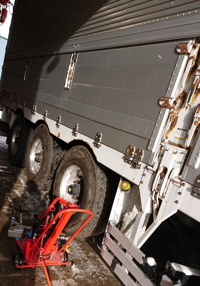 ↑ 大型車のタイヤ交換です。