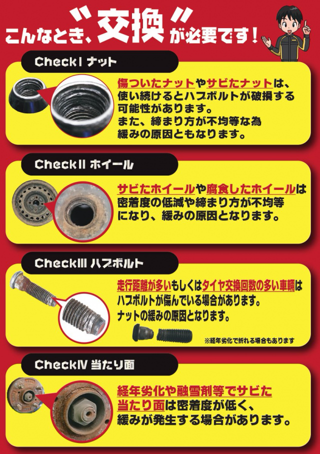タイヤ交換時にこれらの症状が見受けられた場合、