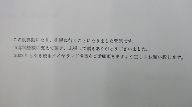 先日、イシバシさんから異動のご挨拶がありましたが、