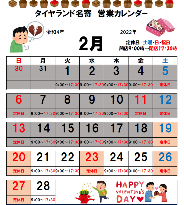 ご来店されたお客様へ”チョコレート”をプレゼント致します♬