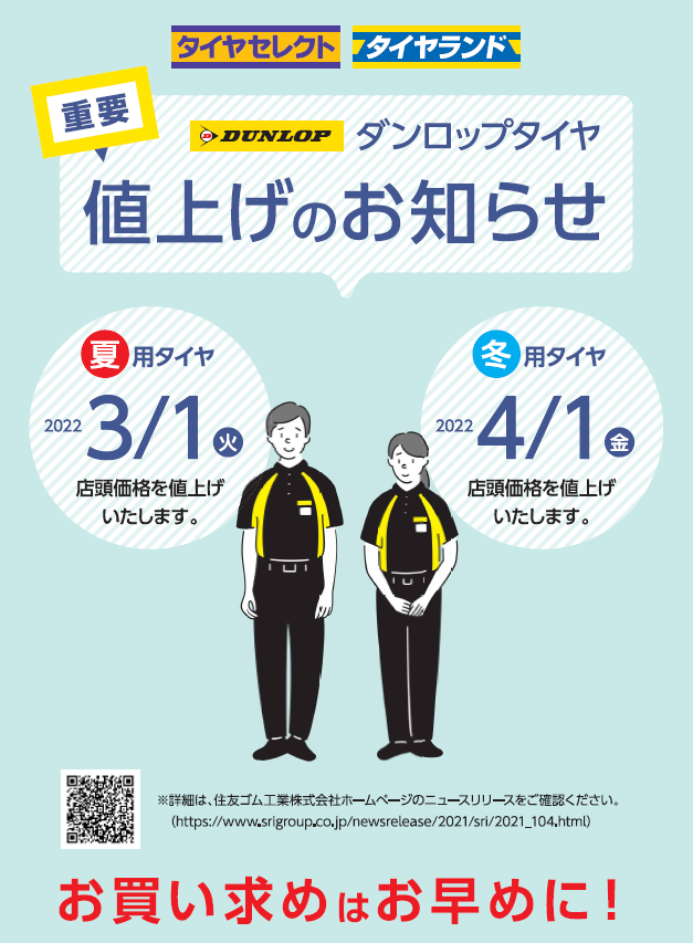 夏用タイヤの値上がりまで、残り約1週間となりました。