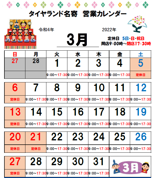 ↑ 今月の営業日のご案内です。