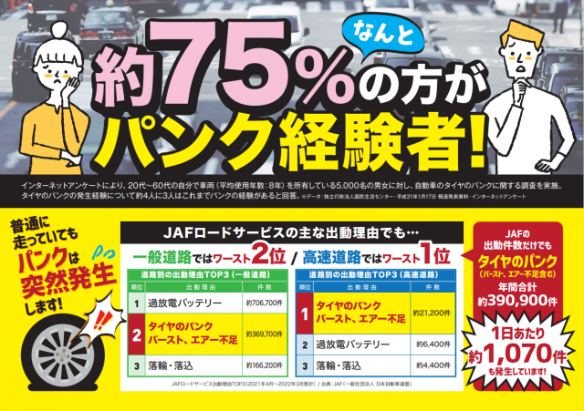 お車のタイヤ、パンクされた経験はございますでしょうか?