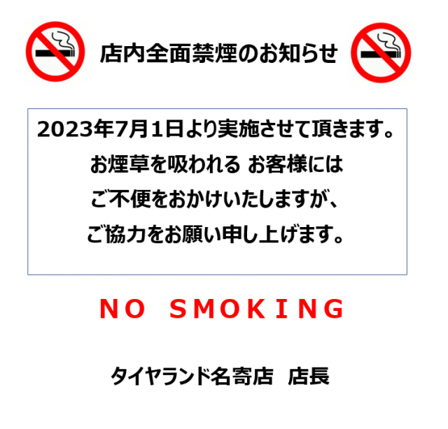 お煙草を吸われるお客様にはご不便をおかけいたしますが、