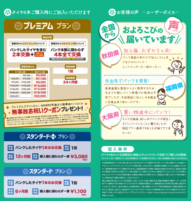 冬タイヤも! 夏タイヤも!ご加入できます♪