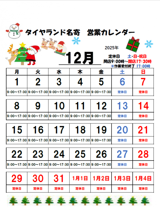 本日は12月の休日案内です!
