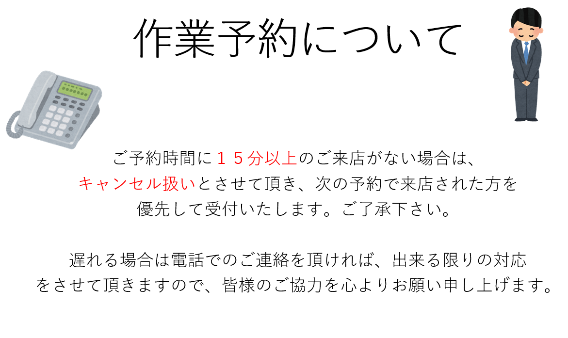 遅れる場合は、事前に電話でご連絡を頂ければ