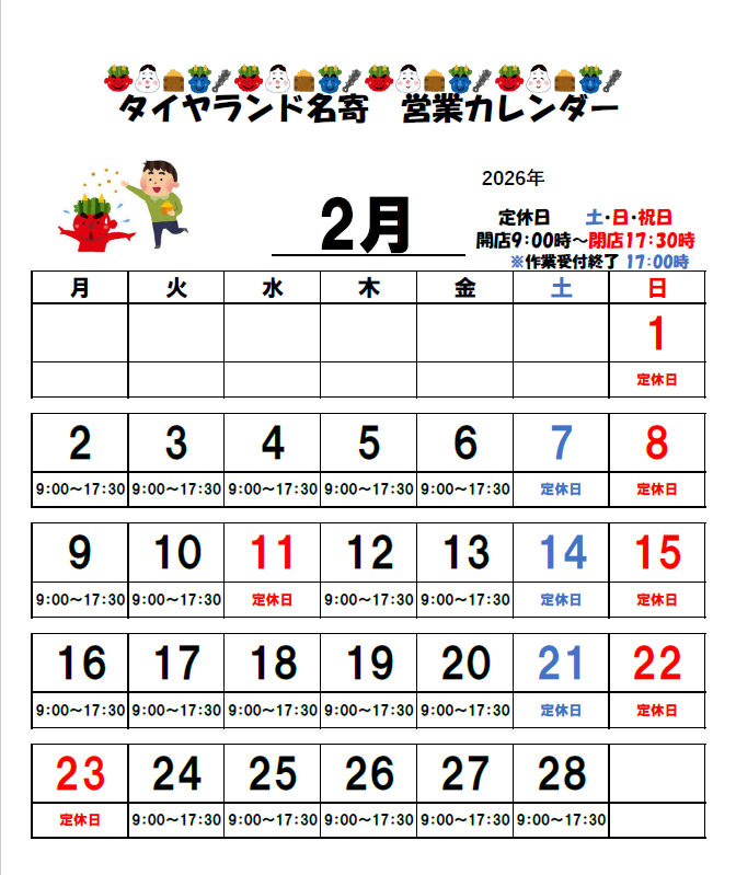本日は2月の休日案内です!