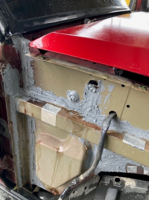 鉄板の継ぎ目のコーキングが割れて隙間ができています。