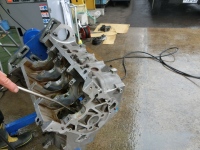 シリンダーライナーの加工が終わったブロックにクランク、ピストンを