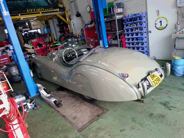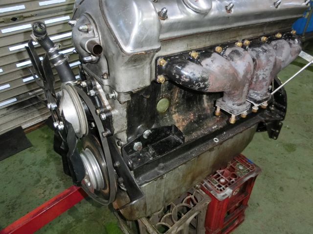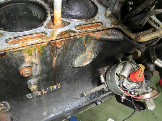 エンジン&トランスミッションを降ろしたXK120は、想像以上です、 シリンダーヘットからの水漏れ、オイル漏れ、等等。