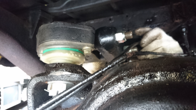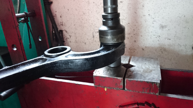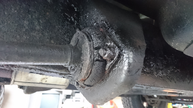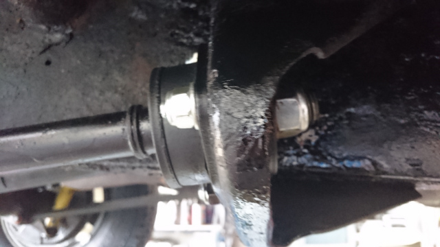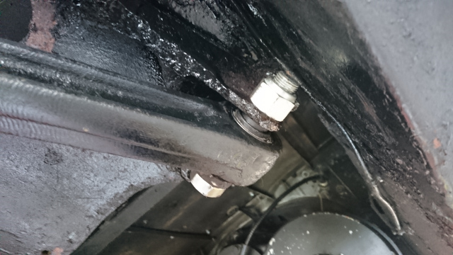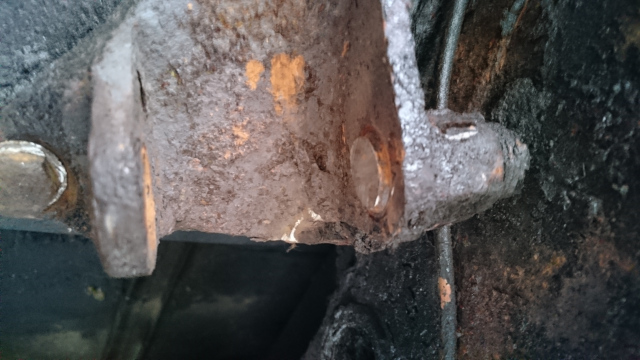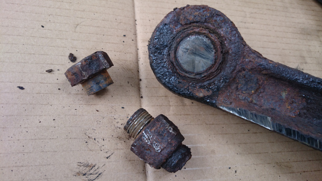 ブッシュ交換です。 久しぶりに、ブッシュ交換です。 融雪剤の影響で、かなり腐蝕してます、 ボルトは錆び付いて戻らない、抜けないです。 切断して外します。 ロアリンクマウントは原型が有りません。 2016.07.29