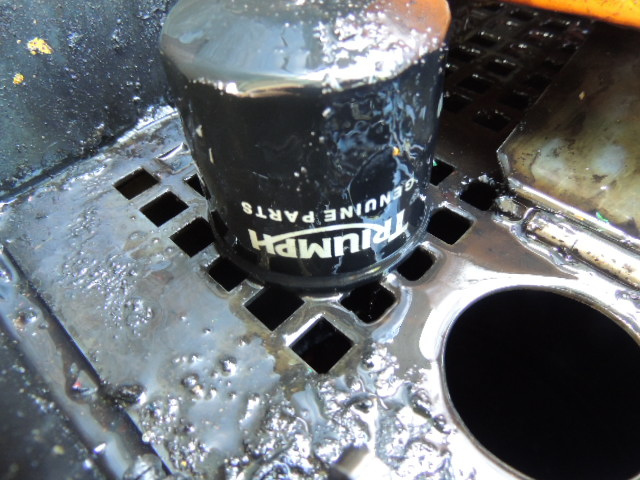 こんにちは、M川です。ボンネビルのオイル交換です。 この走行距離でもう5回オイル交換しています。 勿論エレメントも毎回です。