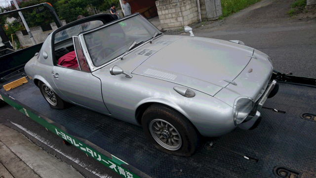 トヨタスポーツ800 1965YのS800です、30年近く走ってませんでした。 とりあえず積載車に積んで来ようと、行ったんですが、 タイヤはペッチャンコ、ブレーキは4輪とも張り付いて、 やっと積んで来ました。 続く。 2016.08.22