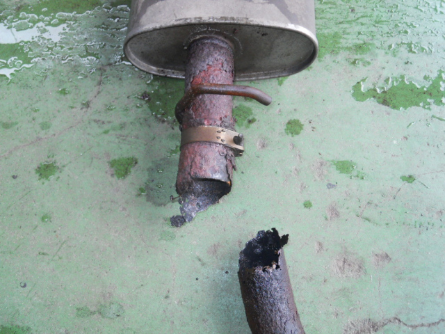 下廻りを見てみるとマフラーがポッキリと折れてました。