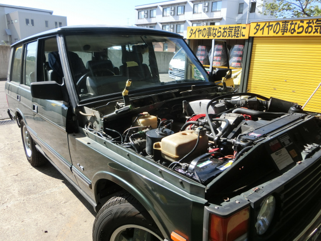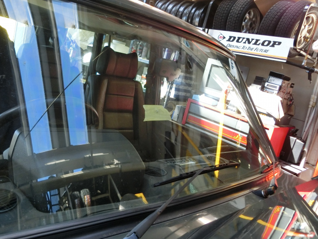 飛び石 車検で引き取りのレンジローバーです、運悪く走行中に 前方の車からの飛び石でフロントガラスにヒビが入り ガラス交換です、 良くある事ですが、仕方ないですね。 保険のお世話になります。 2016.08.27