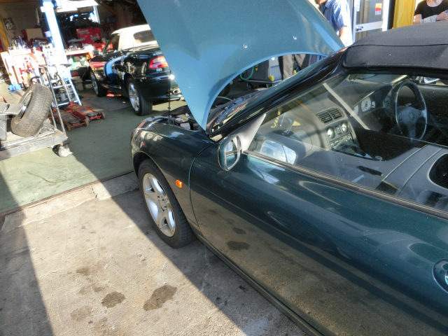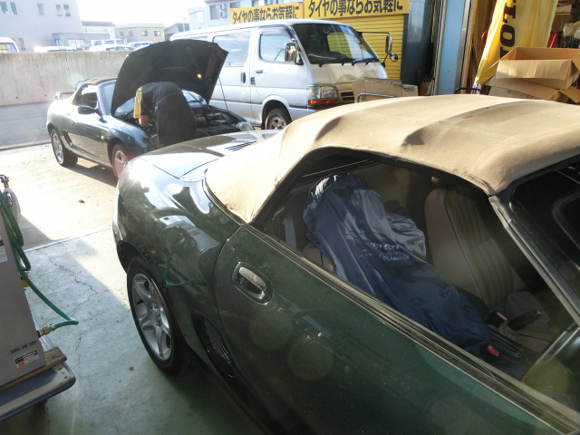 ハイドロ MG-Fのハイドロです、時間が経つとハイドロサスペションの 圧力が下がり、車高が下がってきます、専用の機械とフルードを 入れて、車高を上げます。 なんと、同じ車がもう一台入庫してますね。 2016.09.10