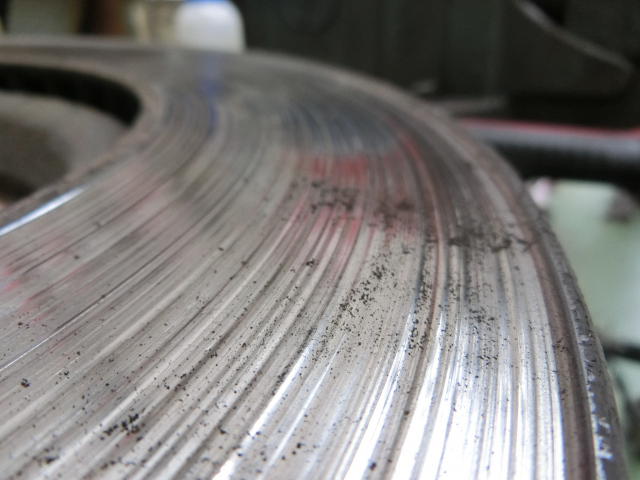 ブレーキは大事です! 北海道名寄市から車検でご来店の一休さん、 上手にブレーキパットを使ってます、残り1mm! 今回は、ローターも交換します、デクセルのスリット入りです。 エアコンのフイルターも良い感じで汚れてます。 2016.10.04