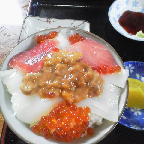 こんにちはM川です。青森県の佐井村にある食堂の名物丼です。 その名も歌舞伎丼。何で歌舞伎なのかは知りません。? とてもうまいツーリングでした。
