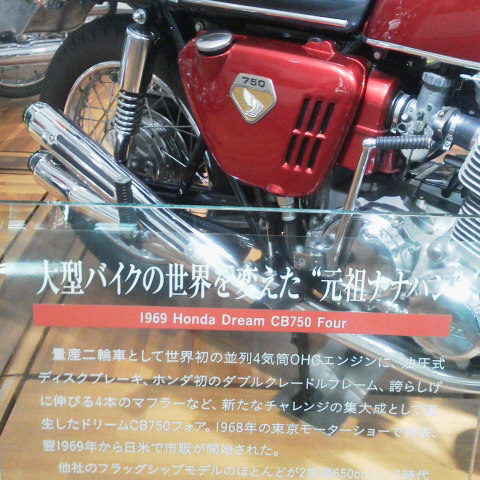 こんにちは、M川です。元祖ナナハン、1969Y,CB750フォアー。 4気筒、750cc、ディスクブレーキなどなど。 ホントいつ見てもすばらしいバイクです。