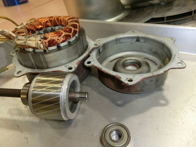 古くて、部品が無いので、分解してモーターのベアリングを探して