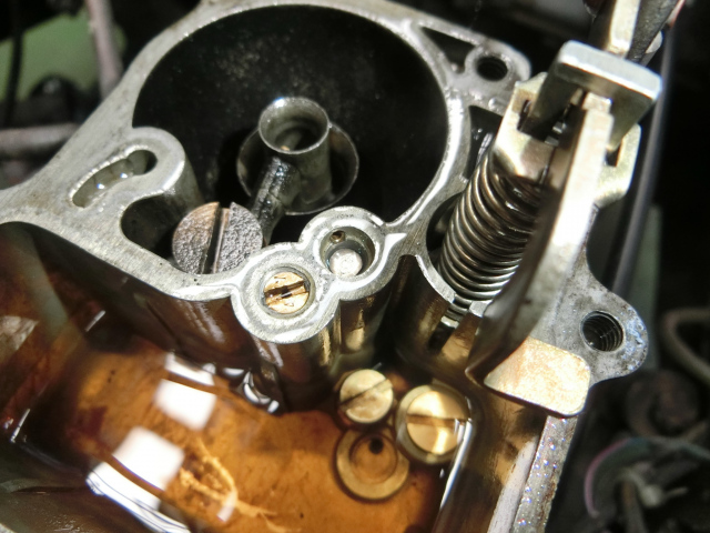 恐る恐る分解して、加速ポンプのノズルからゴミを取り除き