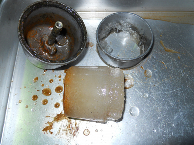 燃料の凍結です。セジメンタルフィルター内で溜まりきった水が凍結していました。