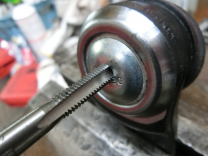 ガタが出たら交換になります、そこで穴を開けて、ねじ山を作り