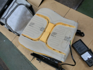 シートヒーター 今の時期とても有り難いのが「シートヒーター」です、でも長年 使ってると中の電熱線が断線して暖かくなりません。 分解して中の電熱線の入ったエレメントを取り換えます。 これでバッチリです。 2017.02.17