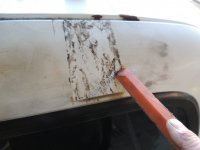 こんにちは、M川です。社用車ハイエースに付いていた旧いステッカーの 糊はがしです。ヒートガン、ステッカーはがし剤、色んなアイテムを使って 苦戦。!綺麗にはがれました。