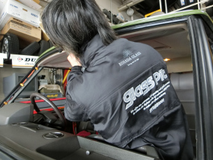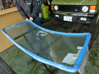 また飛び石でフロントガラスを交換です、熱線入りのガラスですので 高価です、僕たちは出来ないのでガラス屋さんにお願いしました。