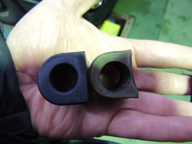 スタビブッシュ こんにちは、M川です。2週連続でハイエースねたです。 フロントスタビのブッシュが磨り減ってしまってゴトゴトいやな音が。 交換したらぴったり音が止まりました。 大した事のない部品ですが効果は大です。 2017.03.07